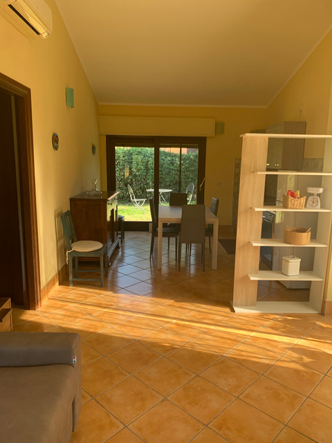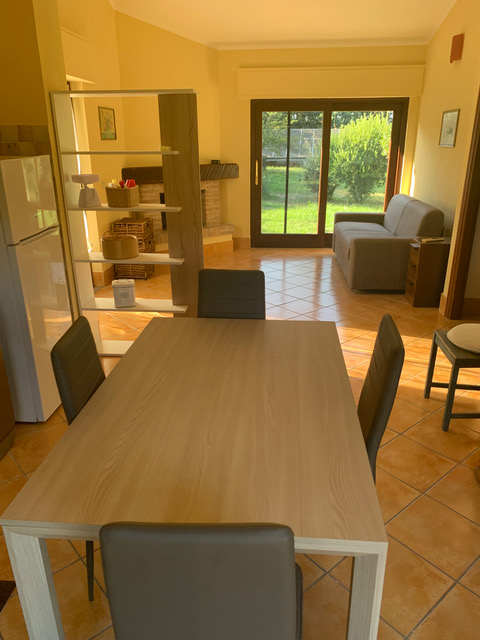 La villetta, situata al piano terra, è progettata per ospitare fino a 5 persone, offrendo ampi spazi e tutti i comfort necessari per un soggiorno piacevole. Le due camere da letto, arredate con gusto e attenzione ai dettagli, garantiscono un riposo rigenerante. Il salone doppio, dotato di un comodo divano letto e di un camino, crea un'atmosfera accogliente, ideale per rilassarsi dopo una giornata di escursioni o di visite alla Città Eterna.